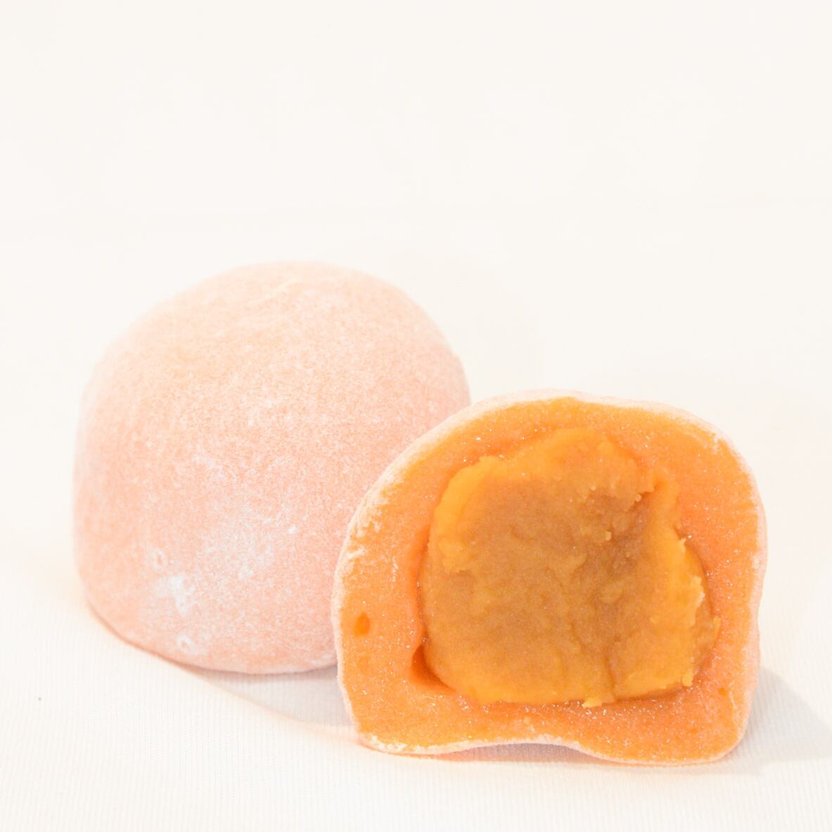 爽やかで甘酸っぱいマンゴーあん大福です。滑らかなマンゴーあんの風味と、お餅の柔らかさが絶妙に調和し、口に入れるとトロピカルな甘さが広がります。