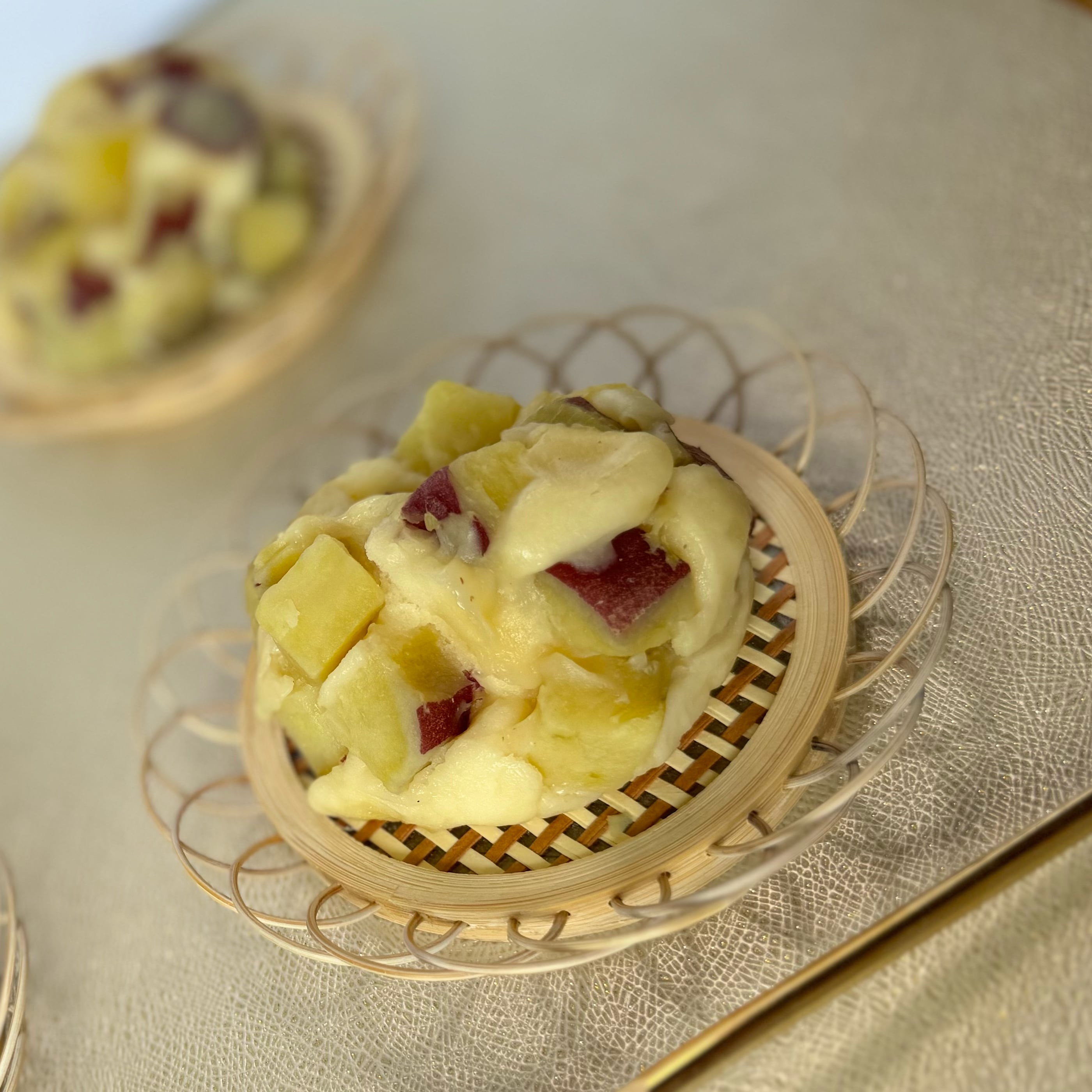 しっとりとした生地に、甘み豊かな金時芋をゴロゴロと混ぜ込んだ金時饅頭です。素朴ながらも上品な甘さとほくほく感を味わえます。